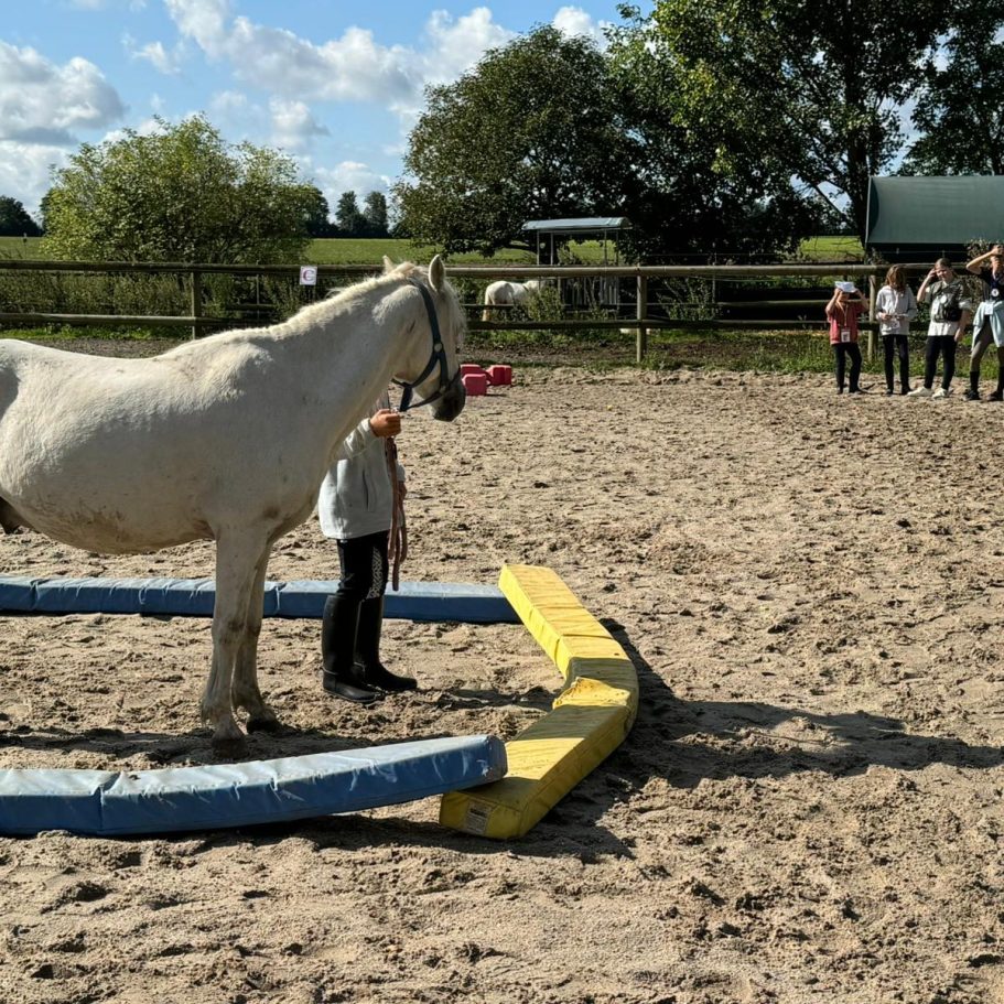 Bei der Bodenarbeit lernen die Kinder spielerisch, wie Ponys „denken“ und miteinander sprechen – nämlich über Körpersprache, Ruhe und Vertrauen.